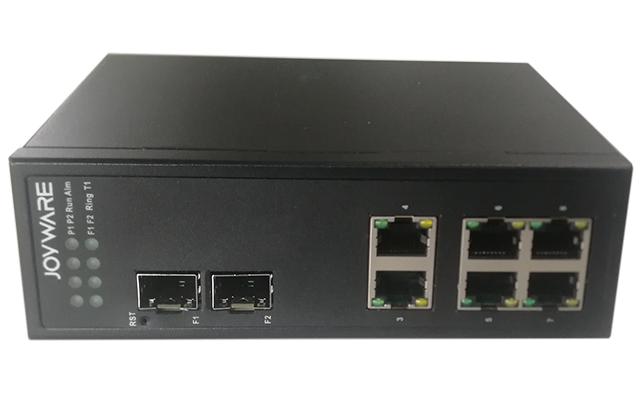 JW-SE10(F2.Ex)-D 系列工业以太网最大提供2个百兆光口,6个10/100M自适应电口。多台设备可以通过网线组成环网以提高链路可靠性,也可与交换机网络电口或光口配套,灵活应对多种网络接入和组网需求。支持OB-Ring、RSTP、VLAN、组播、QoS等丰富的二层软件特性,并支持SNMP标准网管协议,具有IP40防护的金属外壳,-40℃~85℃极端环境温度适应能力及良好的EMC电磁兼容性能。适用于交通、道路、园区、厂矿、楼宇等多种监控场景。