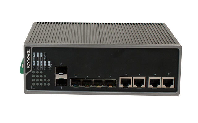JW-SE20(GF2.F4.E4)系列工业以太网最大支持2个千兆SFP接口,4个百兆SFP接口, 4个10/100M自适应电口, 该系列设备可以实现MAC地址、端口等方式接入安全认证,有效隔离非法接入设备。具有二层管理工业以太网交换机功能,有效抑制广播风暴、端口控制、流量统计、链路聚合、端口镜像、VLAN划分、链路层发现协议(LLDP)、IGMP Snooping等协议。
